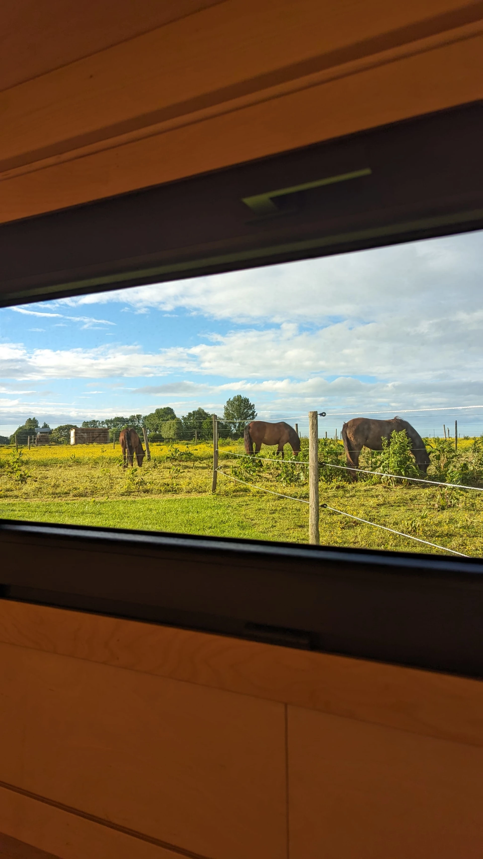C’est vraiment un magnifique endroit entouré de la nature et des chevaux pour se déconnecter et être dans sa bulle. Nous avons même pu observer les étoiles depuis le lit grâce à l’immense vitre✨